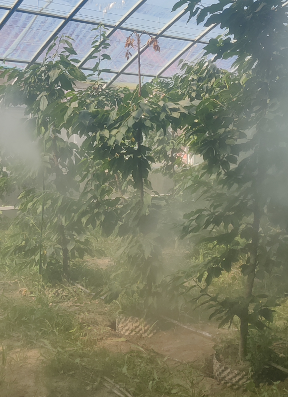 利用高压雾化设备将液体农药稀释液雾化成微小颗粒,使水雾均匀覆盖在果树冠层及叶片背面 达到全面覆盖、精准施药的目的
